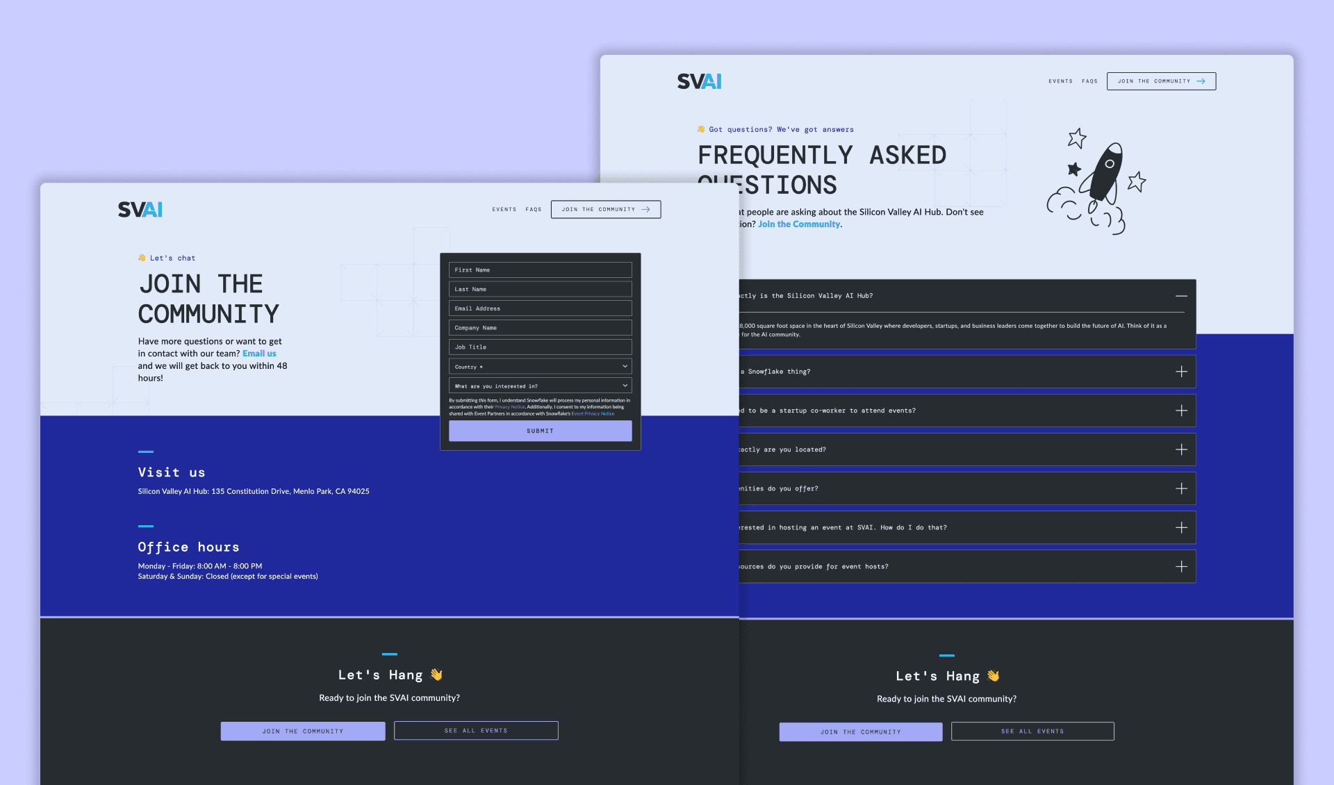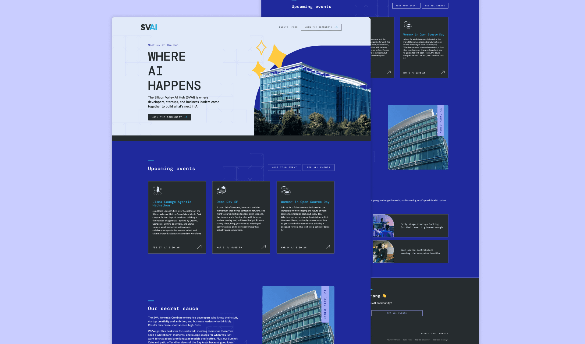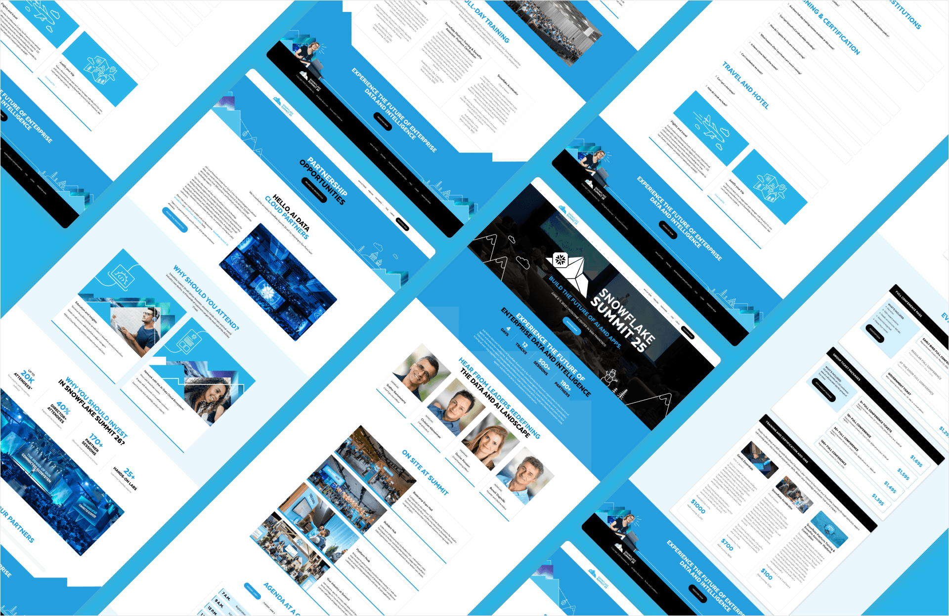 Leading visual exploration and early design direction, I translated initial brand concepts into a cohesive system that spanned web, print, and environmental design. The result was a consistent visual language, built around the hub's forward-looking mission, that held up across screens, pages, and physical spaces, while staying true to Snowflake's wider brand.
