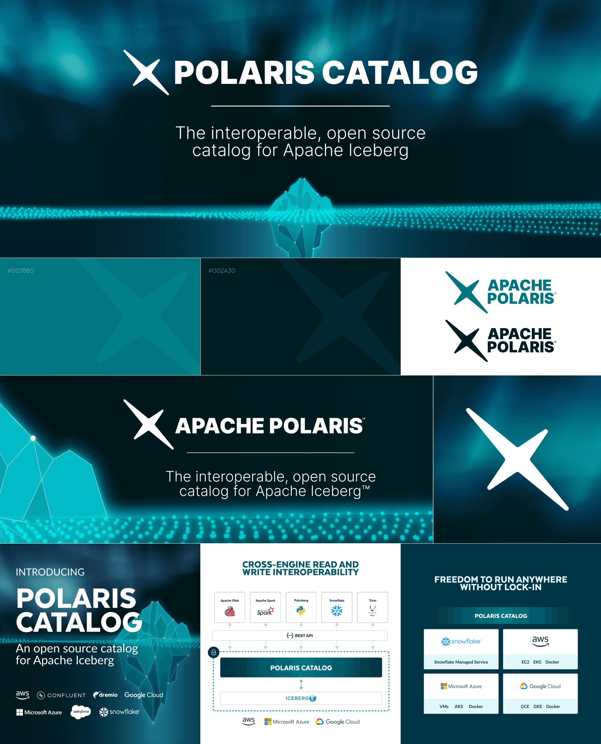 For this project, I developed the product’s visual identity and branding system, creating the core design language used to represent Polaris across marketing and product surfaces. My work included logo development, visual exploration, iconography, motion assets, and a library of supporting graphics used across launch materials, documentation, web experiences, and internal presentations. The goal was to establish a distinct yet cohesive identity that aligned with Snowflake’s brand while clearly positioning Polaris as an open, ecosystem-driven technology.